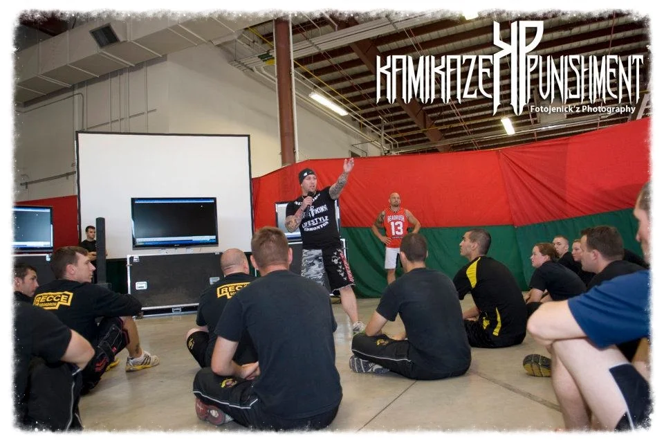 Brad "Kamikaze" Foster - Strength & Conditioning Specialist; Overseeing the fitness programs at Kamikaze Punishment and designing the best possible course layouts to ensure students get the best possible results is what Brad loves to do. Brad is heavily certified with many credentials including: Sports Nutrition Certification, High Intensity Fitness Kettlebell Certification, Herbs and Supplements Certification, Strength & Conditioning Certification, Health Club Management Certification, Spinning Bike Certification, Healthy Eating For Weight Loss Certification, Personal Trainer Certification, TRX Level 1 Certification, First Aid & CPR, NCCP Level Canadian Boxing Coach Certification.